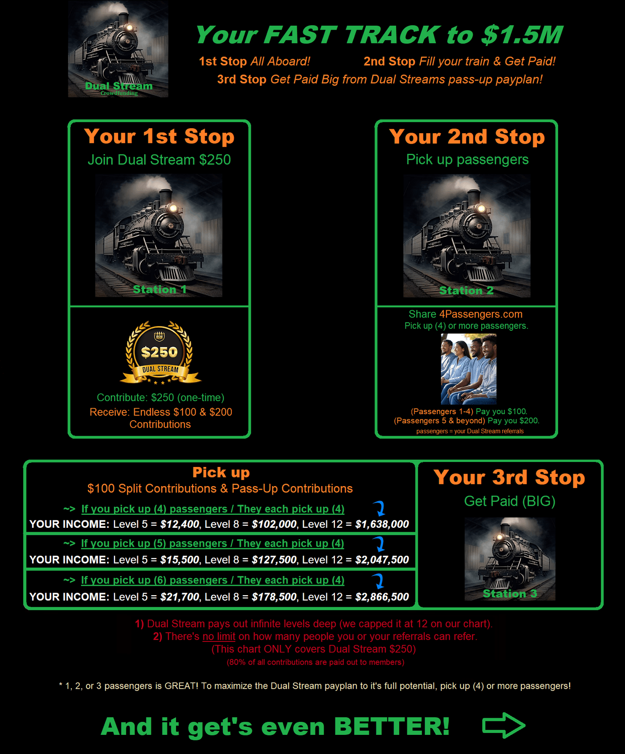Join our Dual Stream Team! Share this site with (4) or more & Fast Track Your Way to $1.5M!