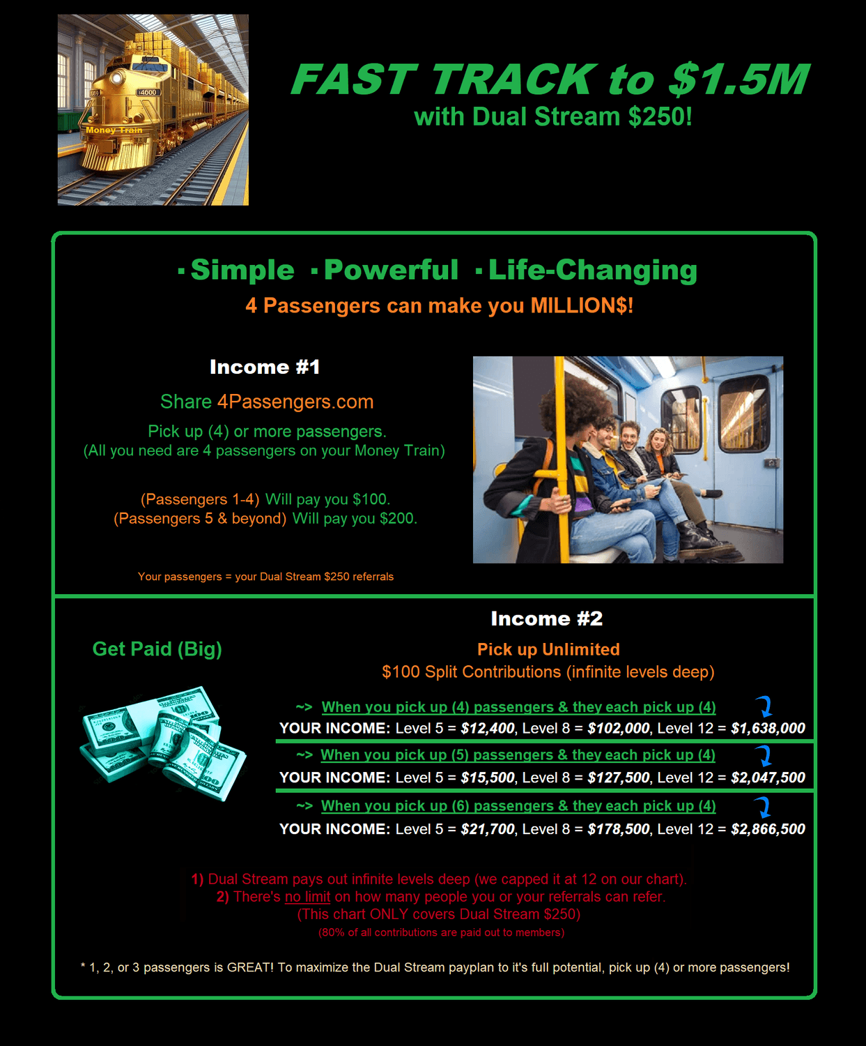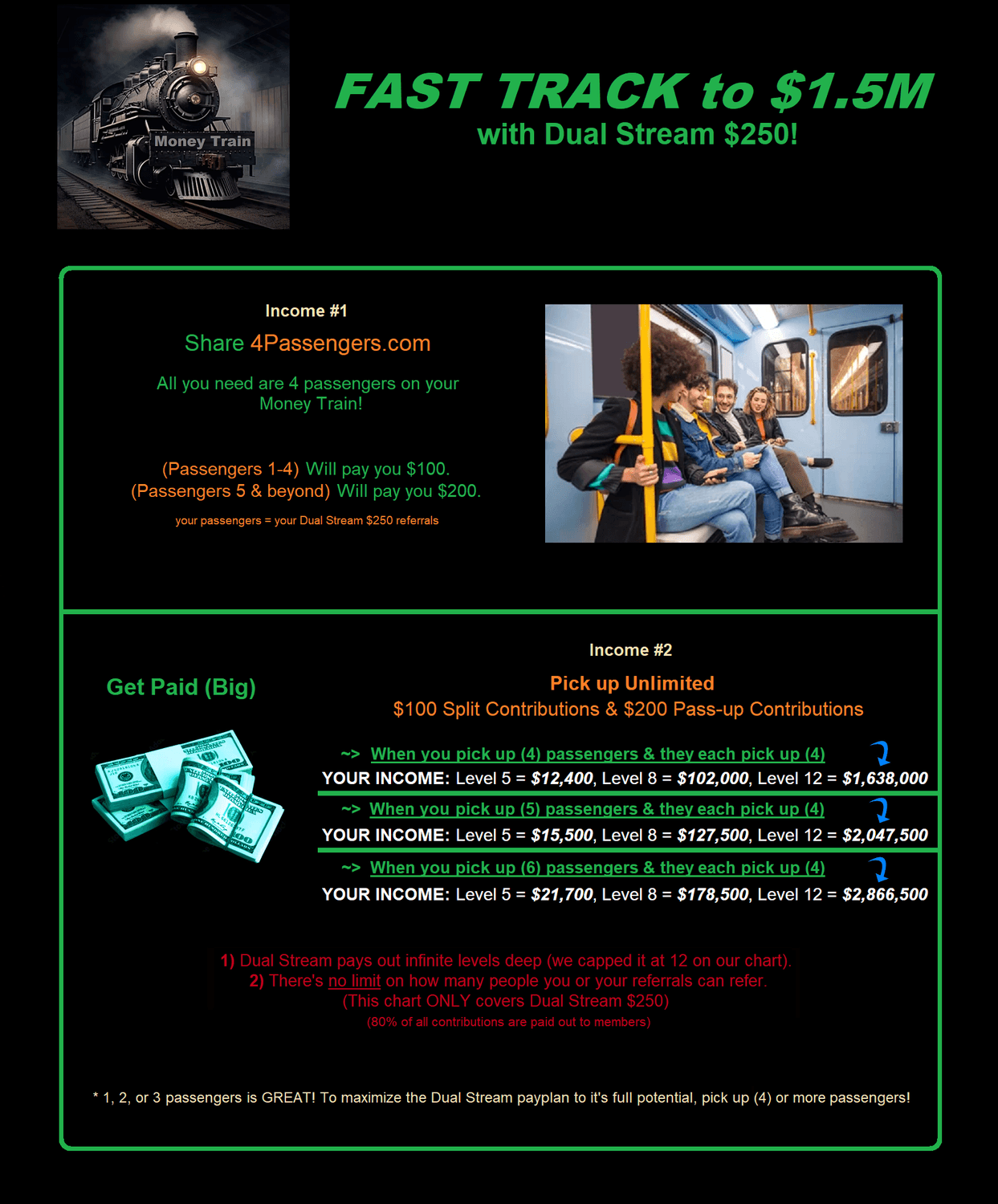 2 (Share 4Passengers.com) Pick up (4) or more passengers. Receive Unlimited $100 & $200 Contributions!