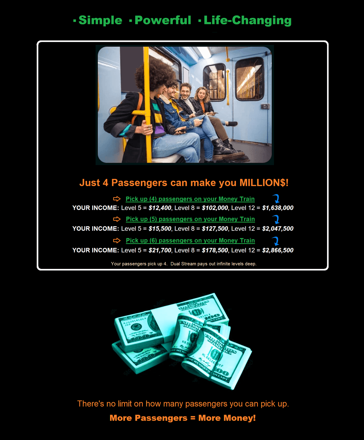 * Disclaimer: Your level of success is based on your own effort. Everyone should pick up 4 (or more) passengers.